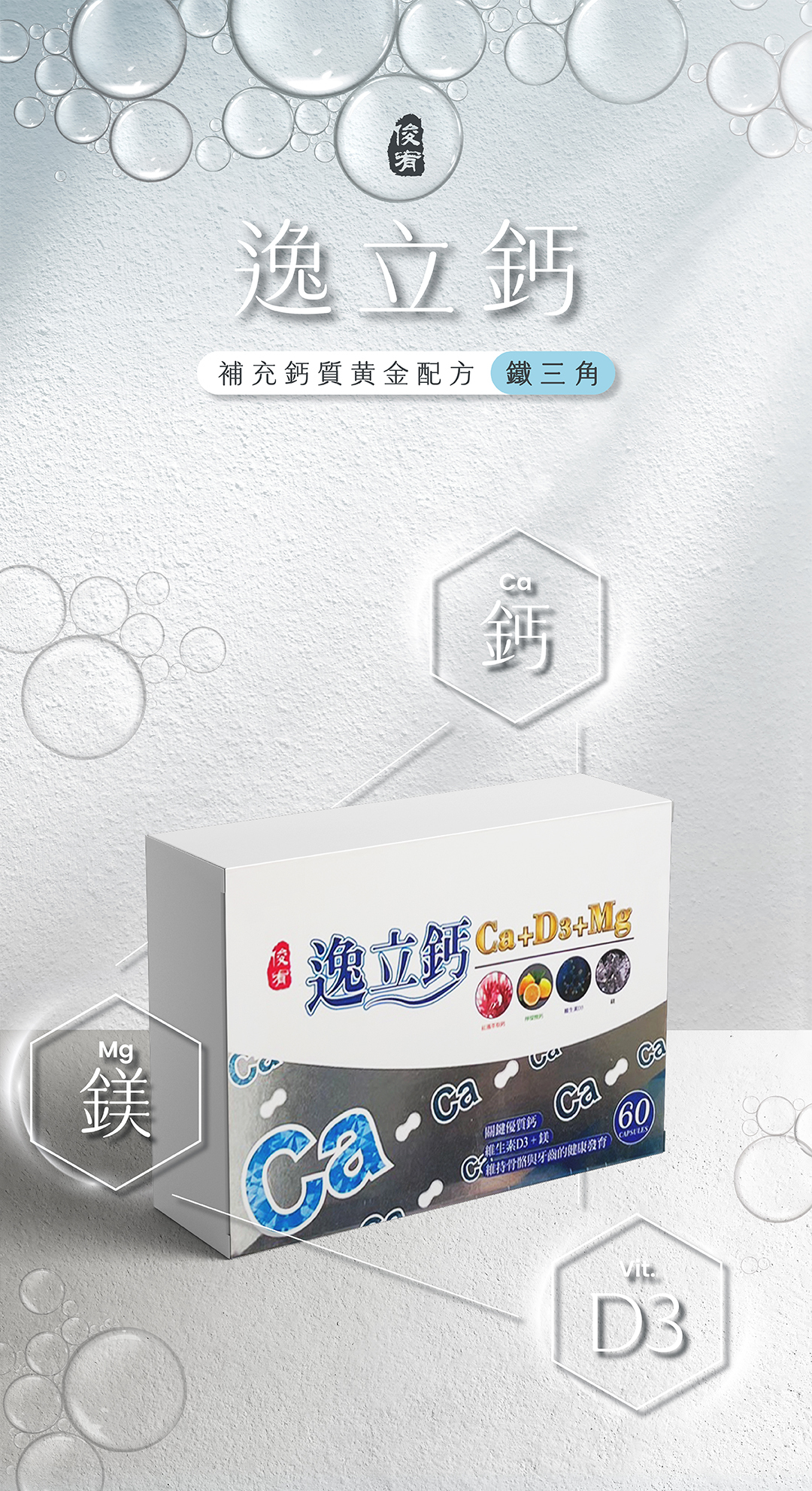 【逸立鈣】關鍵優質鈣+D3+鎂 ‧幫助骨骼牙齒生長發育 / 每盒60顆